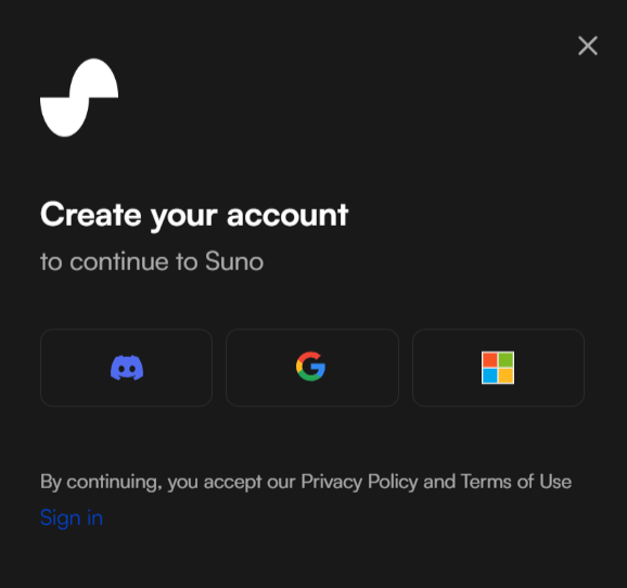 - 访问Suno.ai网站并创建一个账户。(目前不需要魔法也可也使用,不过需要海外账号登录)